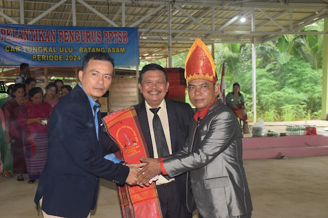 Sementara Ketua Wilayah PPTSB Provinsi Jambi Drs Albertus Sinaga MPd mengucapkan terimakasih kepada Bupati Kabupaten Tanjung Jabung Barat Drs H Anwar Sadat MAg dan jajaran yang hadir pada Pelantikan Pengurus PPTSB Cabang Tungkal Ulu-Batang Asam Kabupaten Tanjabar Periode 2024-2028.